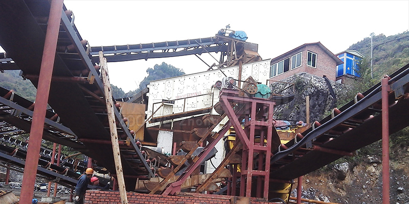 由于花岗岩硬度较高,爆破后的尺寸较大,所以石料经振动给料机均匀给料至一台颚式破碎机进行初破,将1m左右的物料破碎成不超过200mm的料,然后再由弹簧圆锥破进行二次破碎,经由振动筛筛分出0-30mm的成品料,这样的配置不仅降低了设备的磨损率,也为客户节省了成本,提高了整体工作效率。