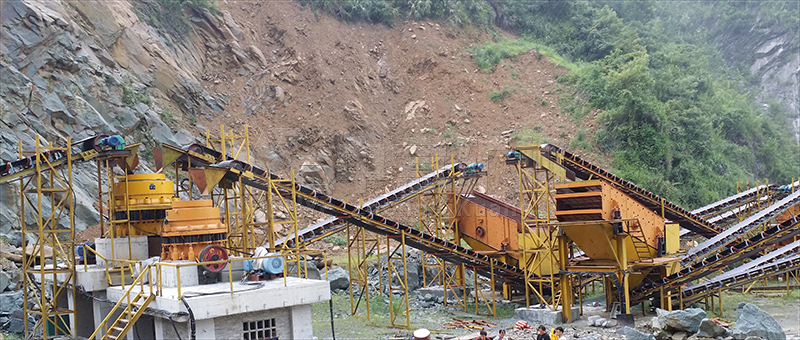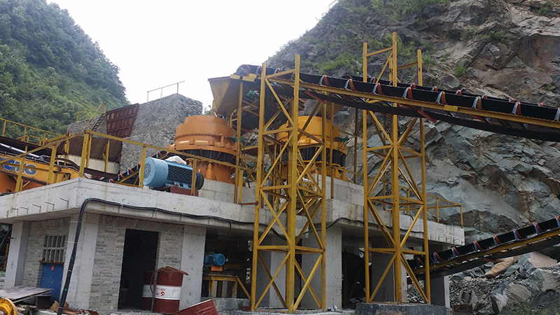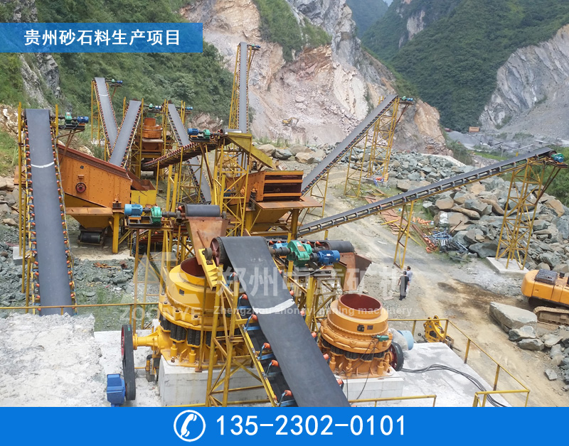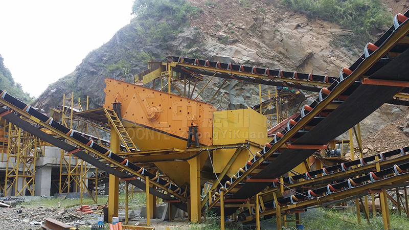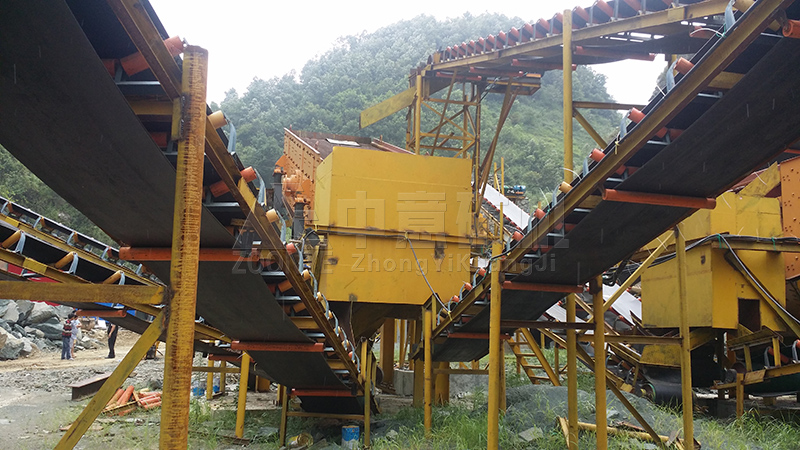 设备配置:给料机,鄂破、弹簧圆锥破,振动筛、皮带输送机等