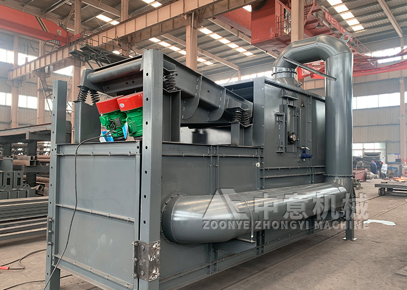 物料通过振动给料机均匀给料,通过精准风力分选将物料中的轻、小物质与重物质分离出来,轻物质通过轻物质出料输送机输出,灰尘通过除尘与空气分离,重物质沉降于重物质出料输送机上。