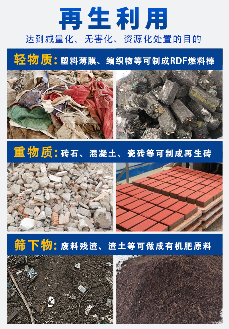 适用物料:装修垃圾、陈腐垃圾、填埋垃圾、混合生活垃圾、大件垃圾分选...